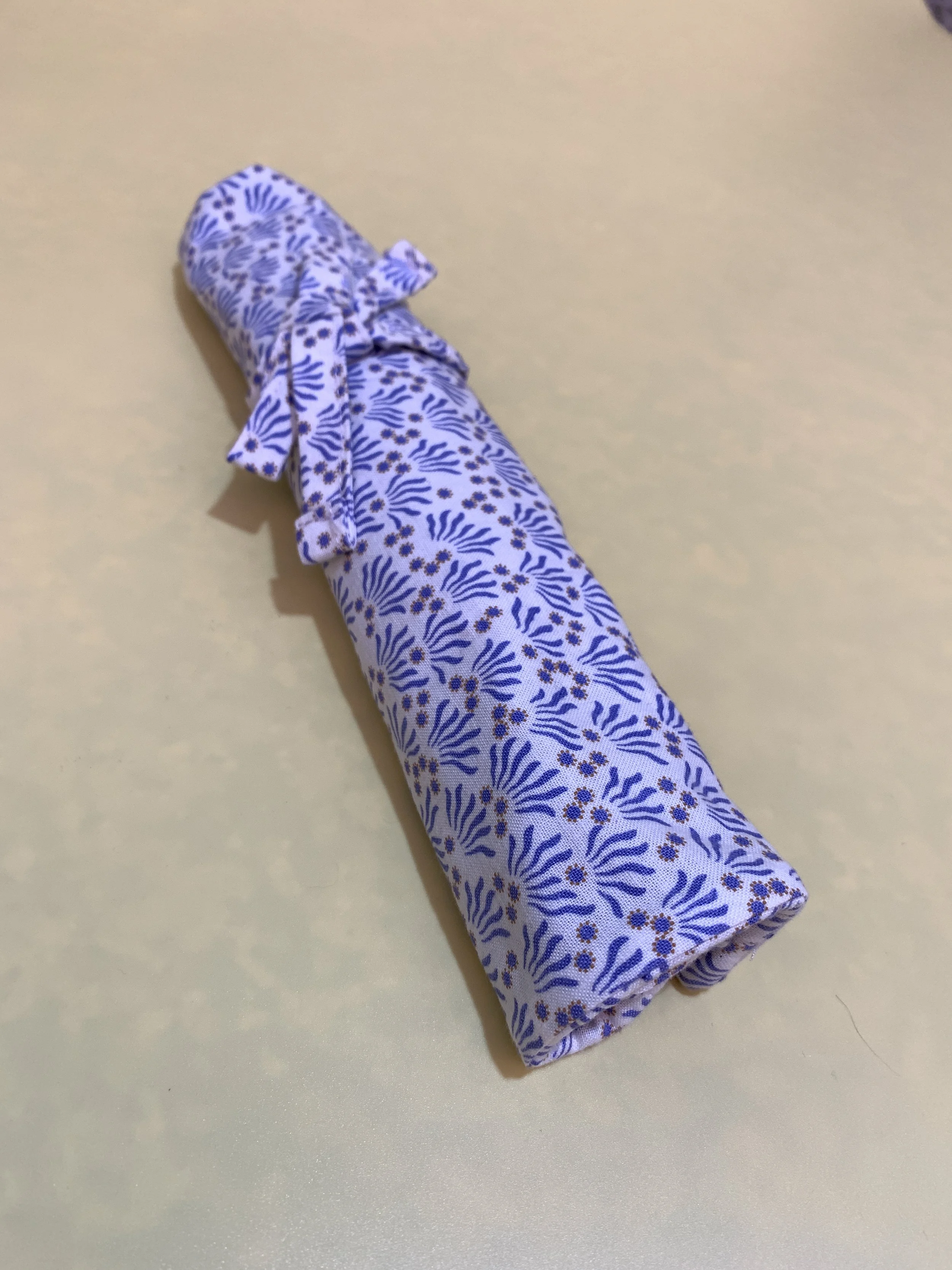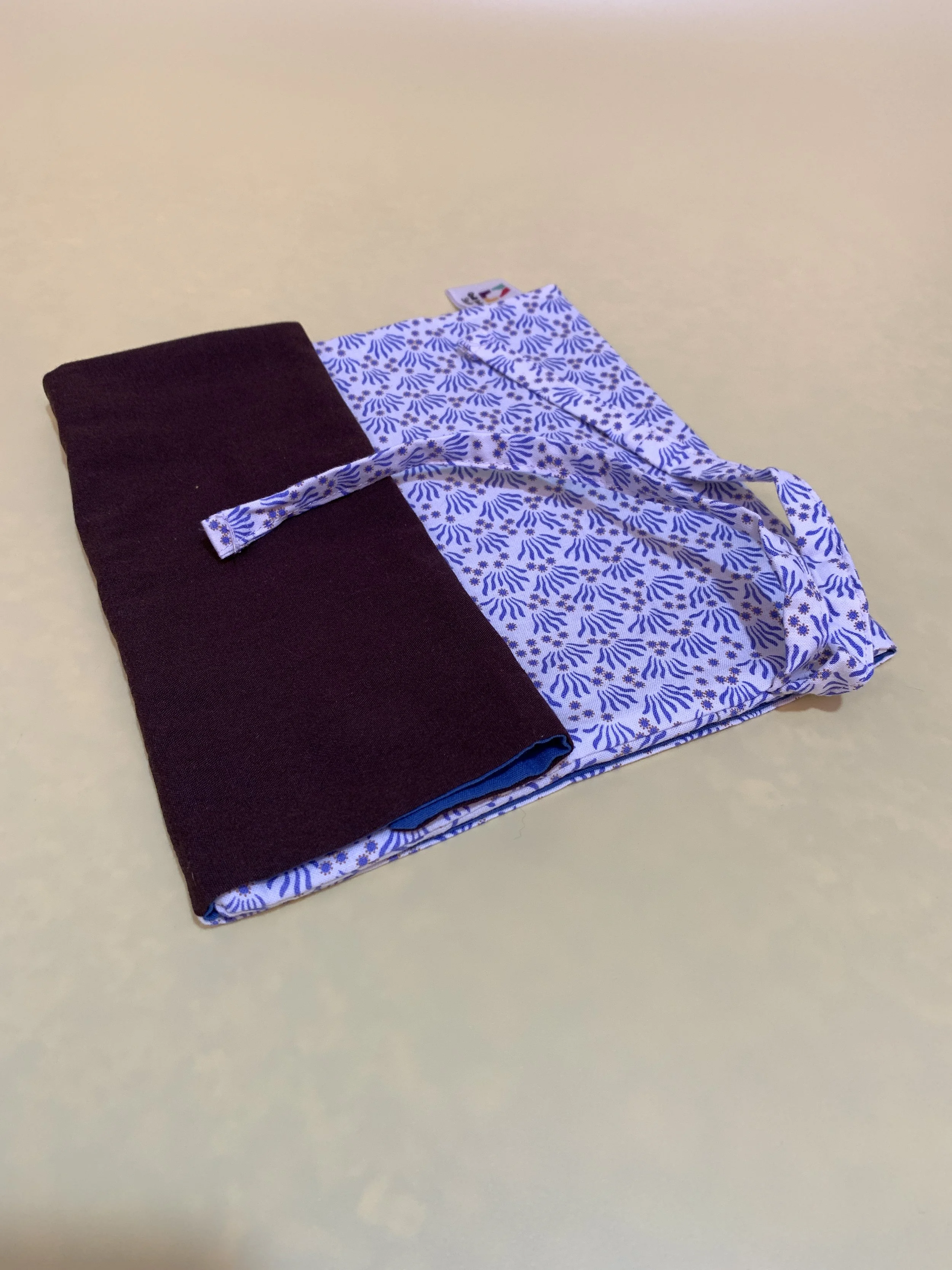 Almohadilla acolchada azul sobre una superficie blanca.