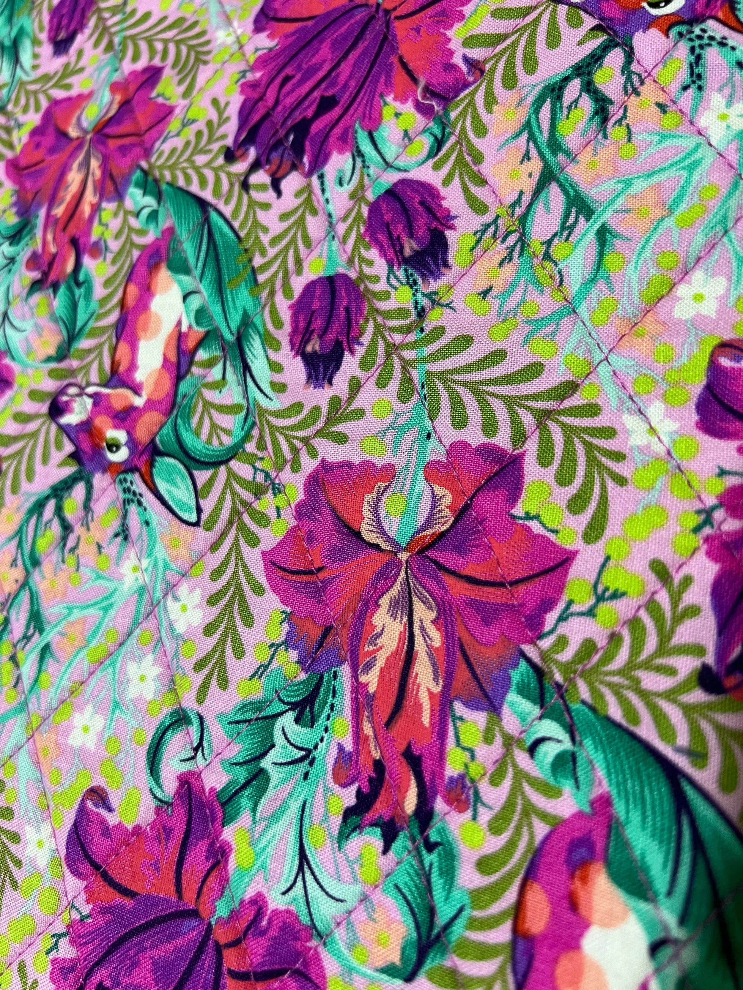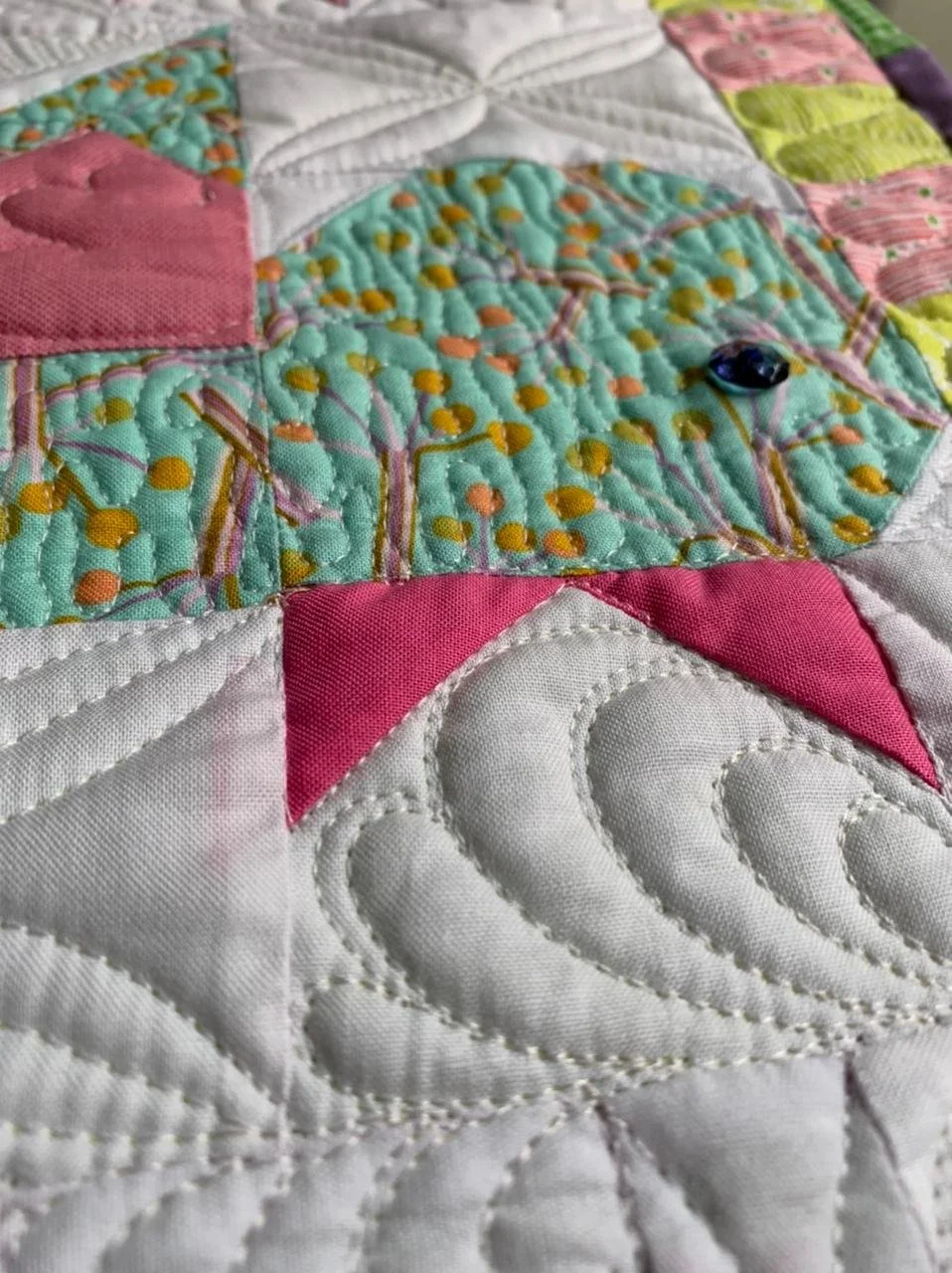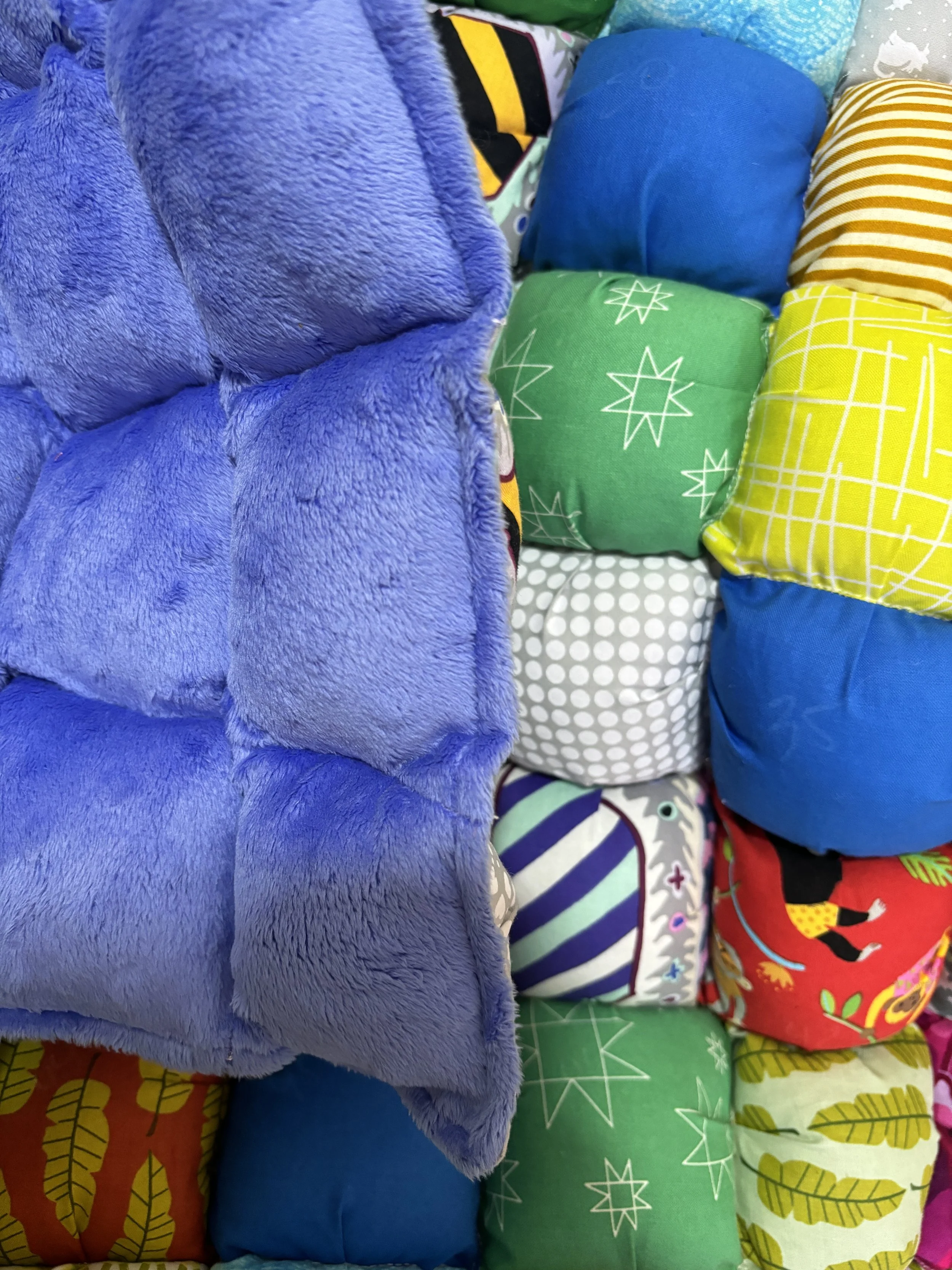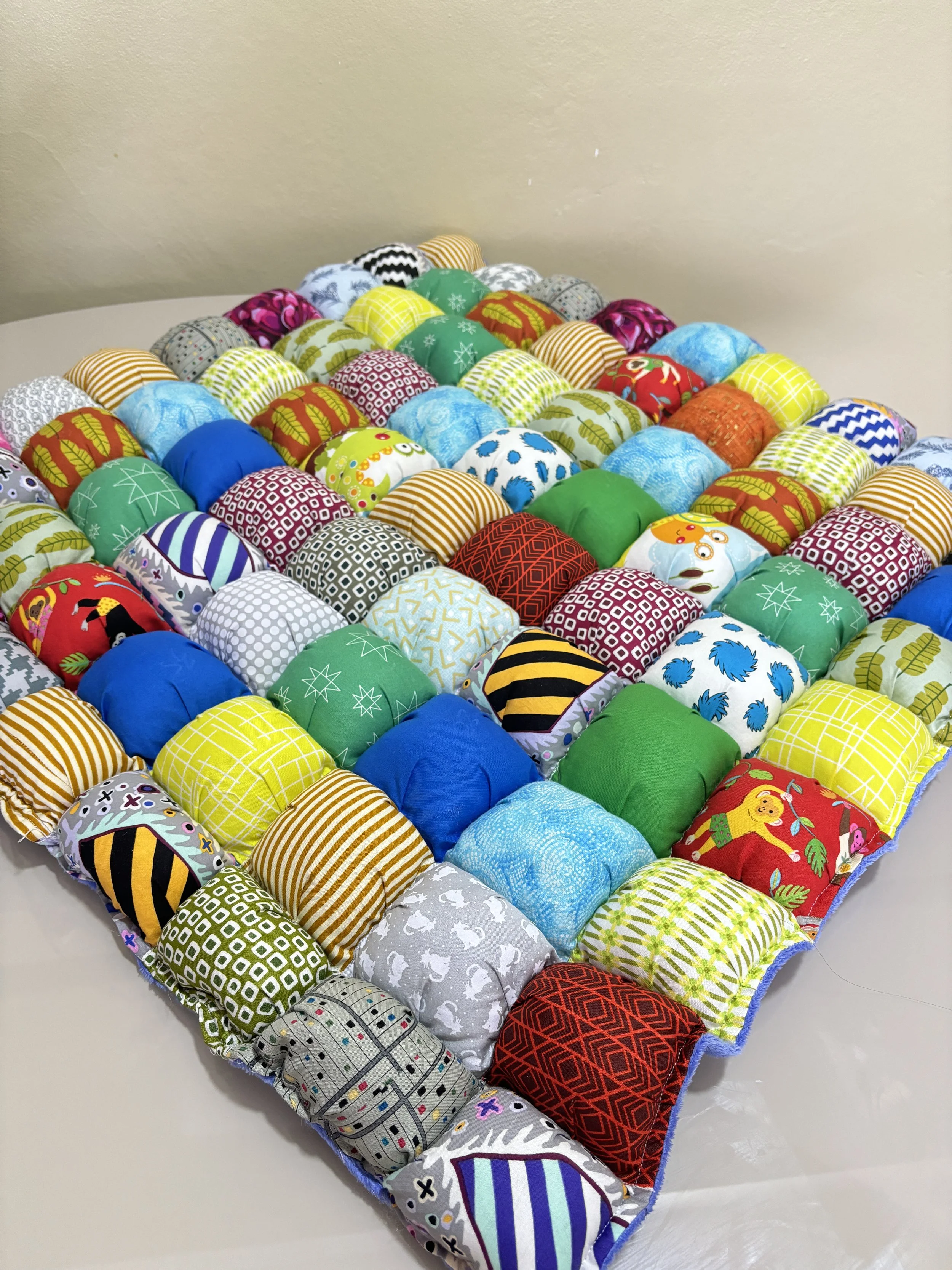 Edredón de burbujas colorido hecho a mano con varias telas estampadas.