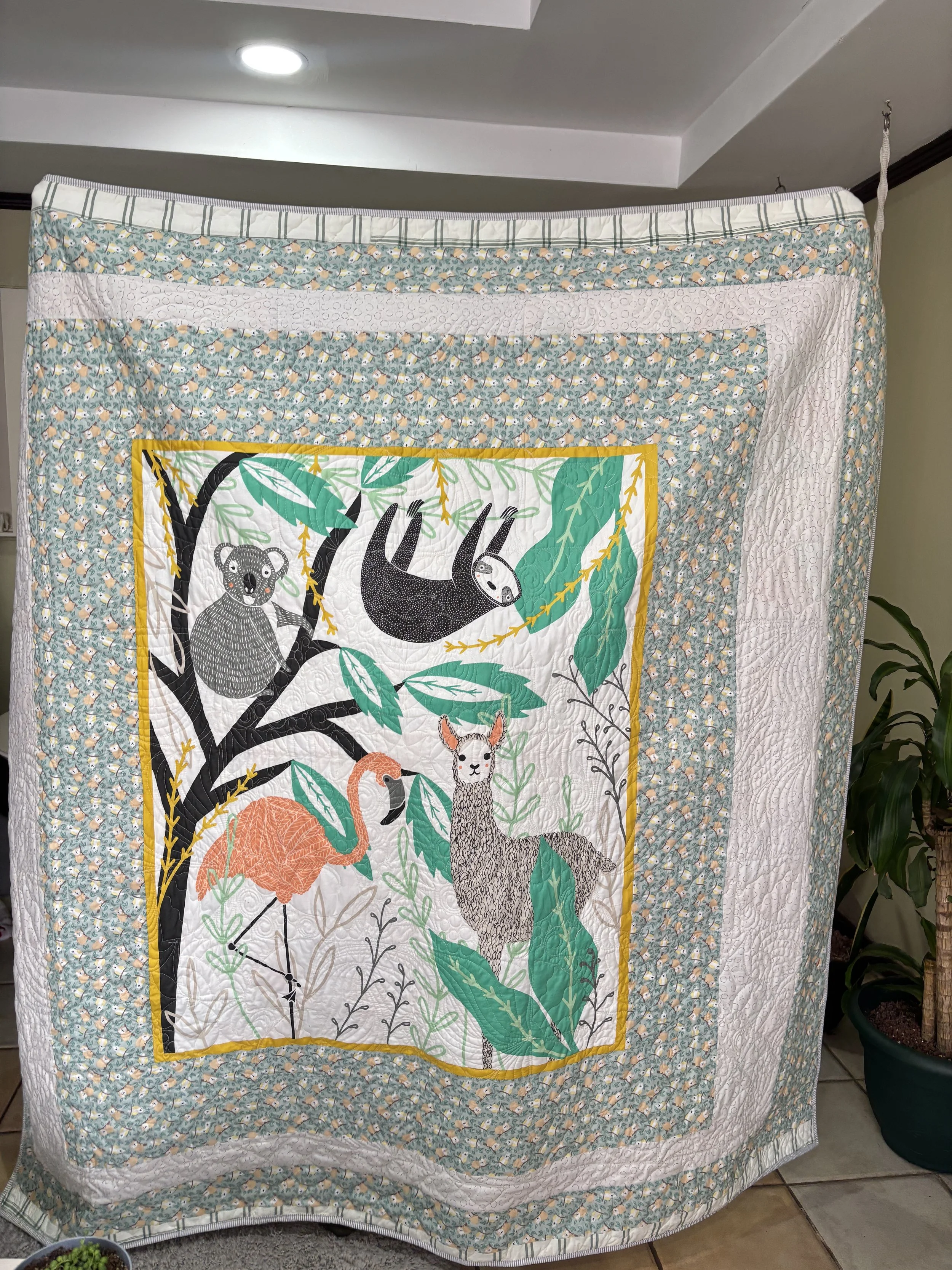 Colcha acolchada con patrones de animales de tela de colores